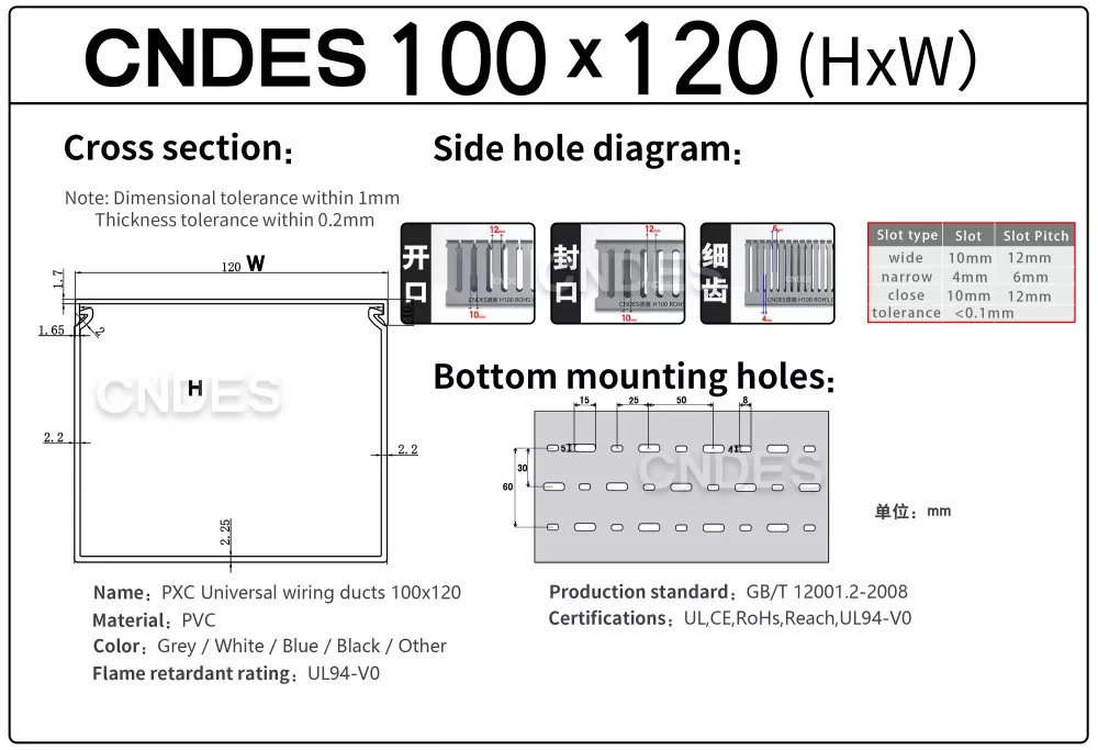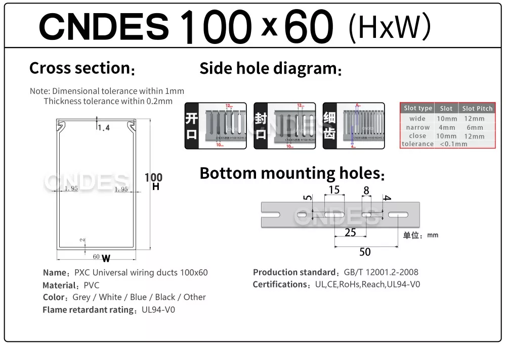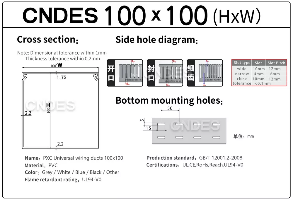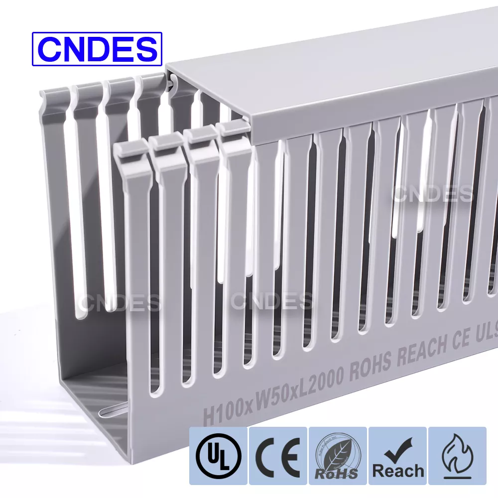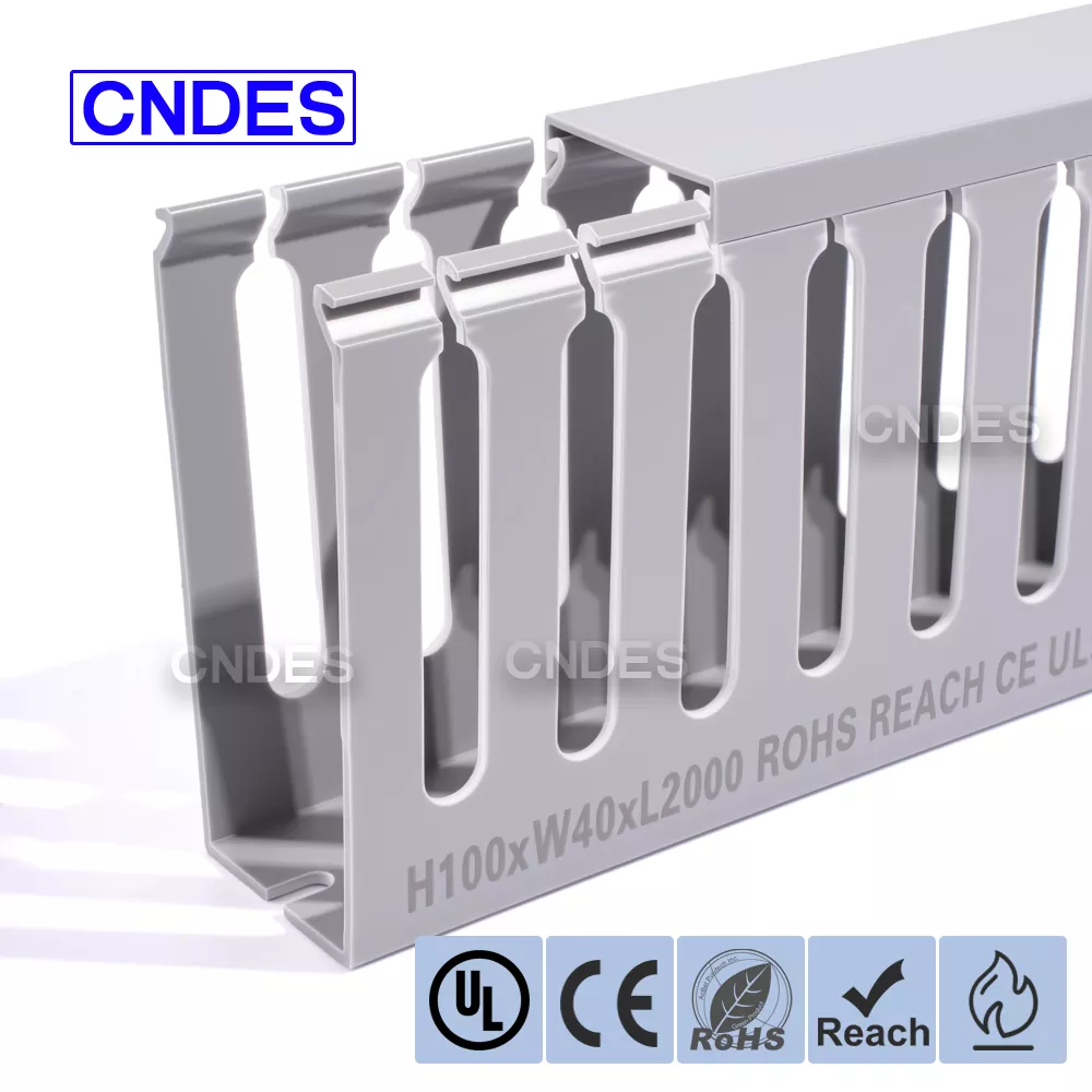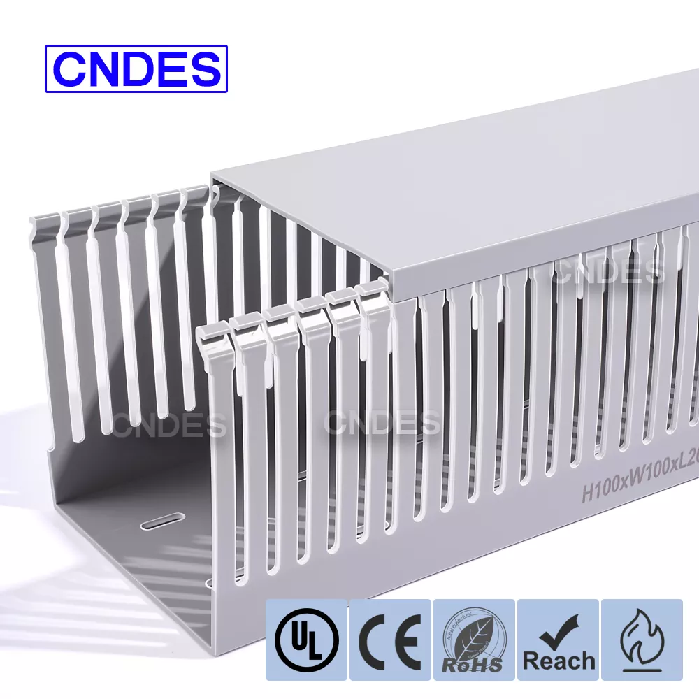 CNDES este un producător profesionist de jgheaburi de cabluri cu 24 de ani de experiență, specializat în producția de conducte de cablare personalizate de 100 mm înălțime deschisă din PVC. Aici, vom prezenta produsele noastre din seria de jgheab de cablu cu o înălțime de 100 mm.