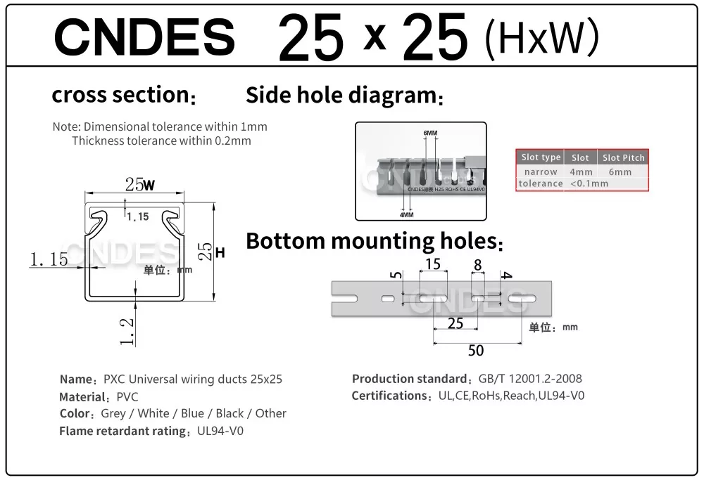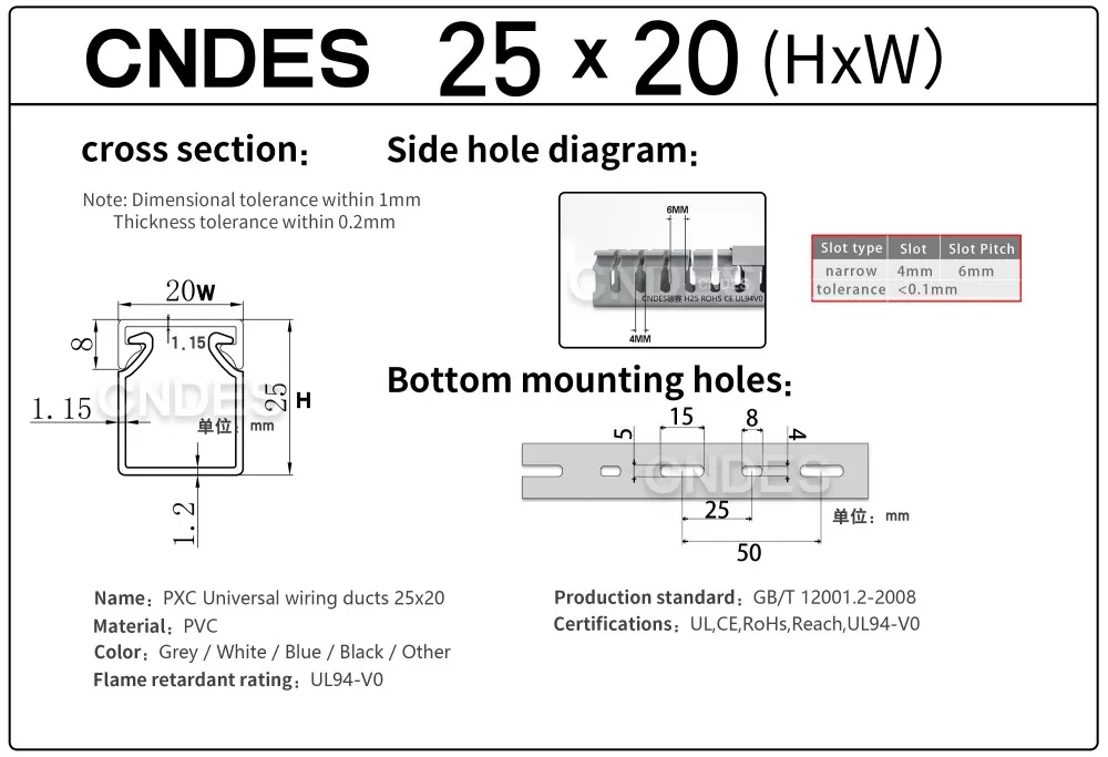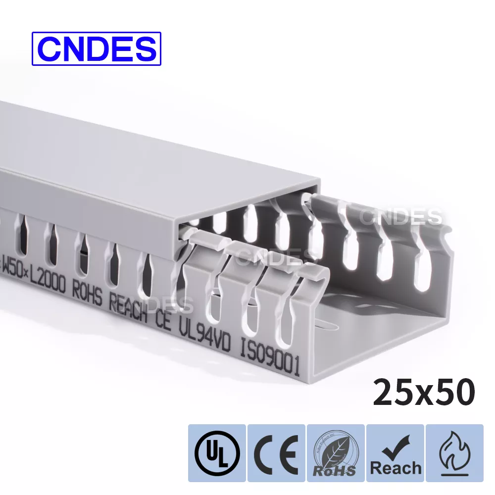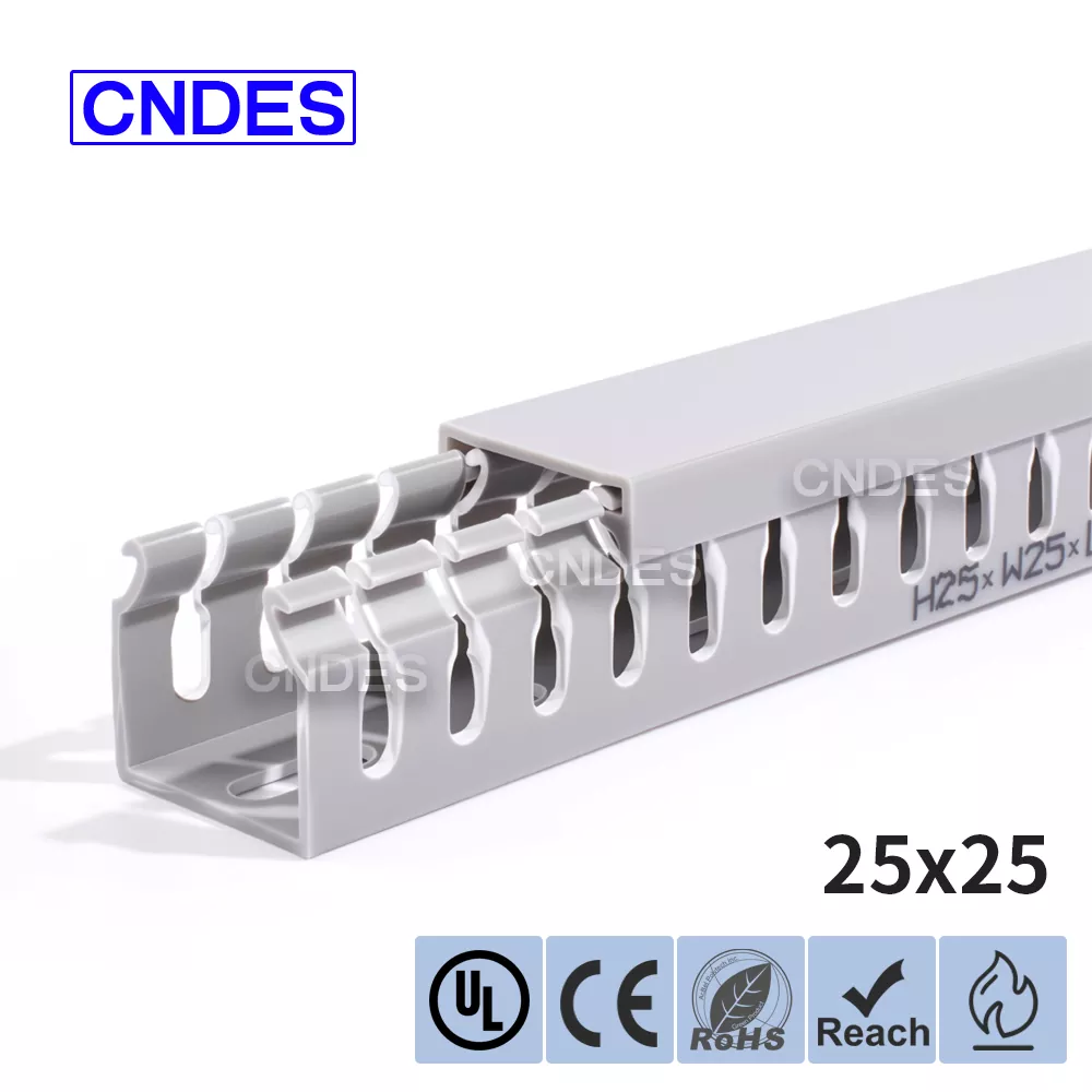 Prin echipamentele noastre de ștanțare de înaltă precizie, dezvoltate independent, combinate cu un proces unic de tăiere automată segmentată, CNDES poate produce în mod flexibil produse cu mai multe specificații, inclusiv conducte de înaltă performanță cu înălțime de 25 mm din PVC cu fante pentru panouri de control, satisfacând nevoile diverse ale clienților în dulapuri de comandă și sisteme electrice.