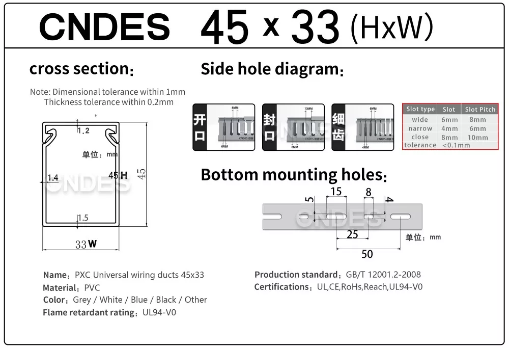 În calitate de producător profesionist, am dori să vă oferim conducte de acoperire cu sârmă din PVC cu fante CNDES cu înălțimea de 45 mm. Inclusiv 45*25, 45*33, 45*45.