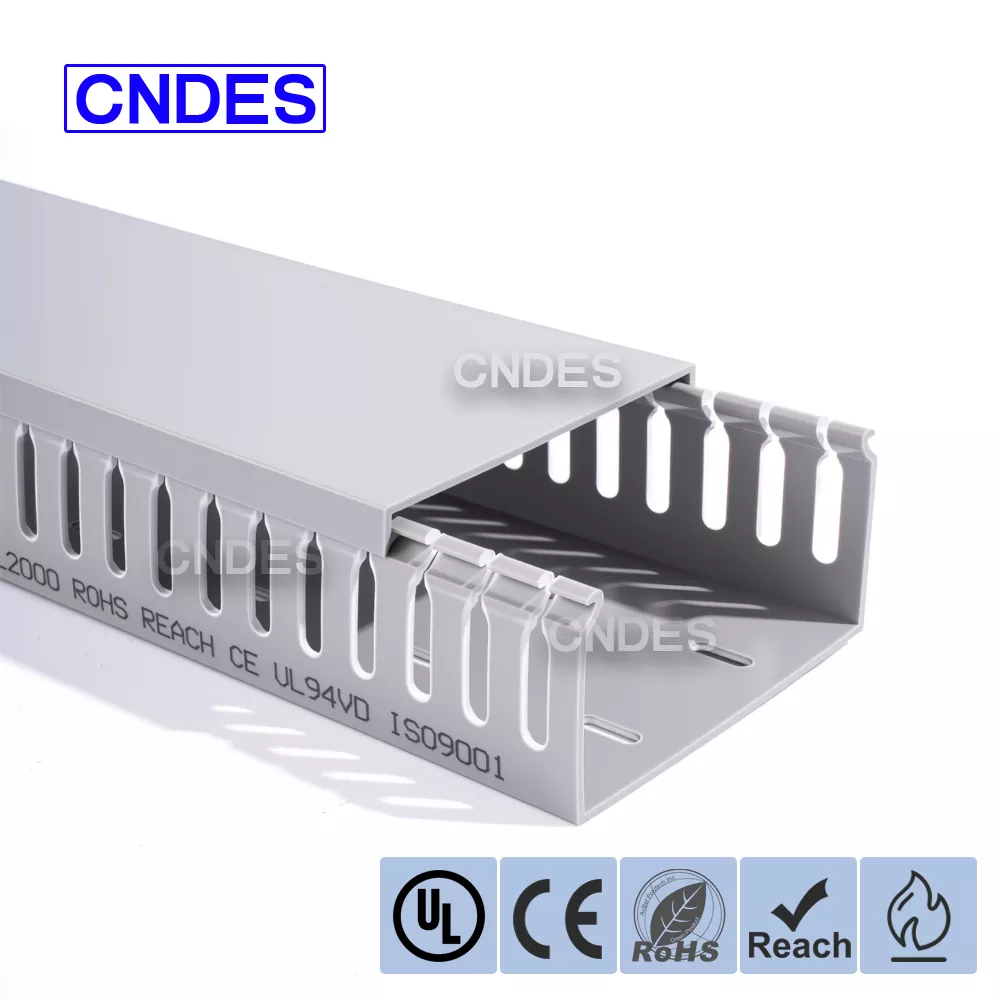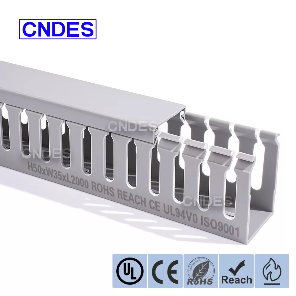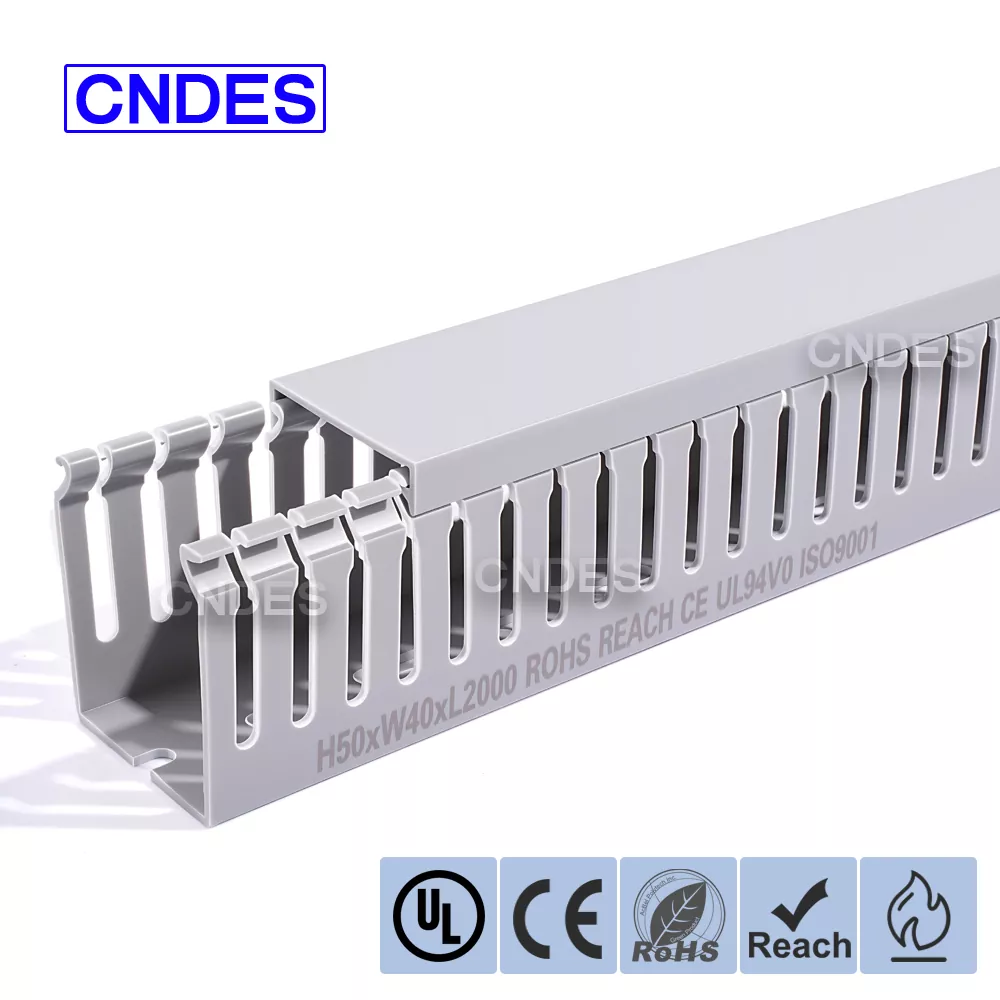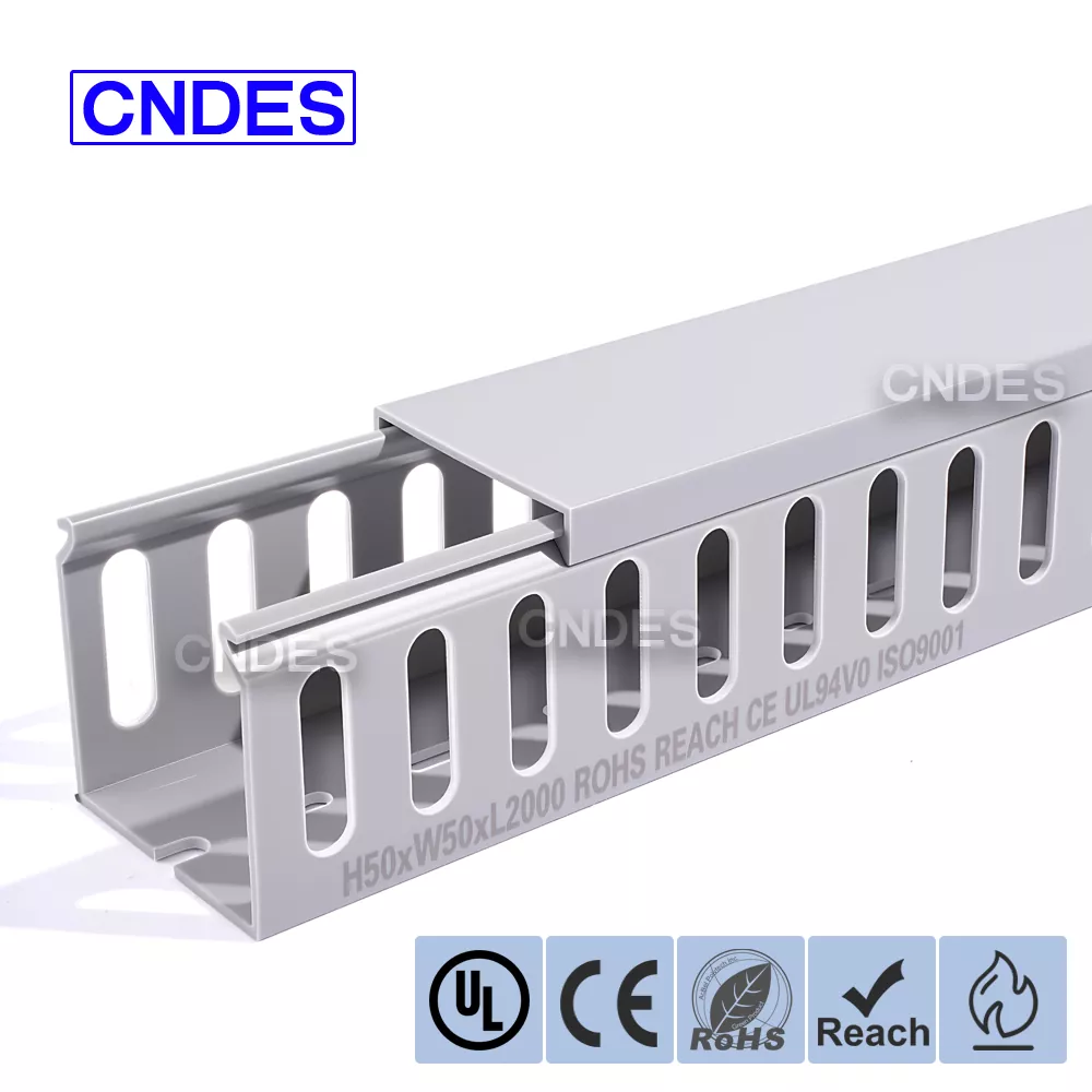 Conducta de cablare pentru panouri din PVC cu fante de 50 mm înălțime de calitate de la CNDES este o soluție versatilă și eficientă de gestionare a cablurilor concepută pentru panouri de control industriale, carcase electrice și mașini. Oferind echilibrul perfect între funcționalitate și rentabilitate, această conductă este concepută pentru a vă menține cablajul organizat, sigur și protejat în orice mediu.