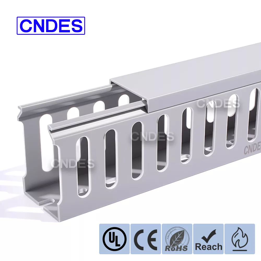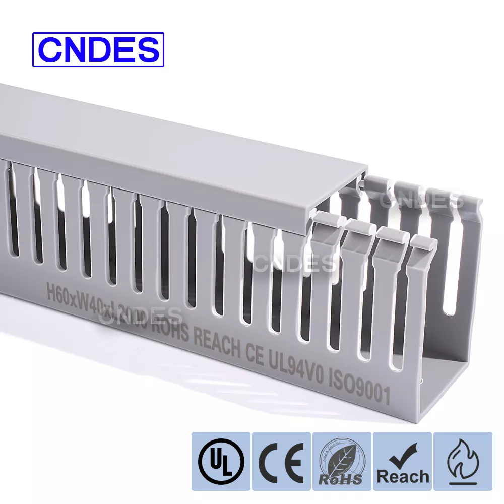 Conducta de cablare PVC ignifugă de calitate 60×40 este o soluție fiabilă de gestionare a cablurilor, concepută pentru panouri electrice, dulapuri de comandă și sisteme de automatizare industrială în care siguranța și organizarea sunt esențiale. Produs de CNDES, un producător și furnizor de încredere de conducte de cablare din PVC din China, acest model combină dimensiunile compacte cu performanța ignifugă certificată, făcându-l ideal pentru instalațiile electrice profesionale.