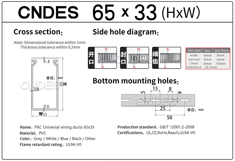 La CNDES, am proiectat canalul de rutare a cablurilor de calitate 65×33 special pentru proiectele în care spațiul este limitat, dar organizarea cablurilor încă contează. Acest canal de rutare compact îi ajută pe instalatori să mențină cablarea îngrijită, protejată și ușor de gestionat în interiorul panourilor electrice, cutii de control și carcase compacte.
