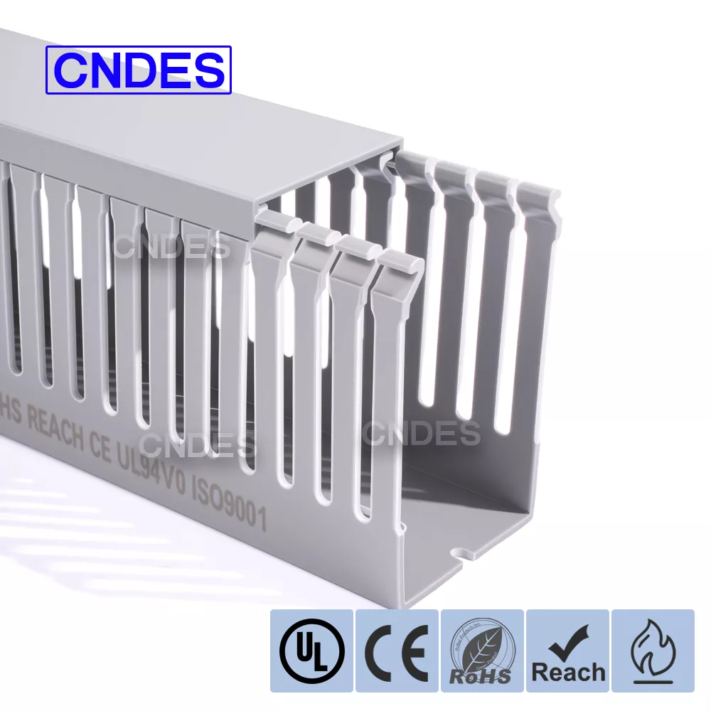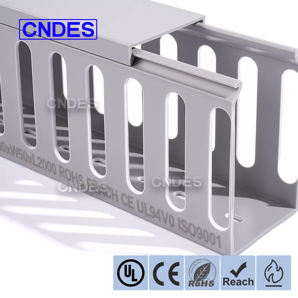CNDES este un producător profesionist de tăvi de cablu din PVC, situat în China. Aici, vă vom prezenta Organizatorul nostru de cabluri cu panouri din PVC cu fante de 80×50, unde 80*50 mm reprezintă o jgheab de cablu cu o înălțime de 80 mm și o lățime de 50 mm.