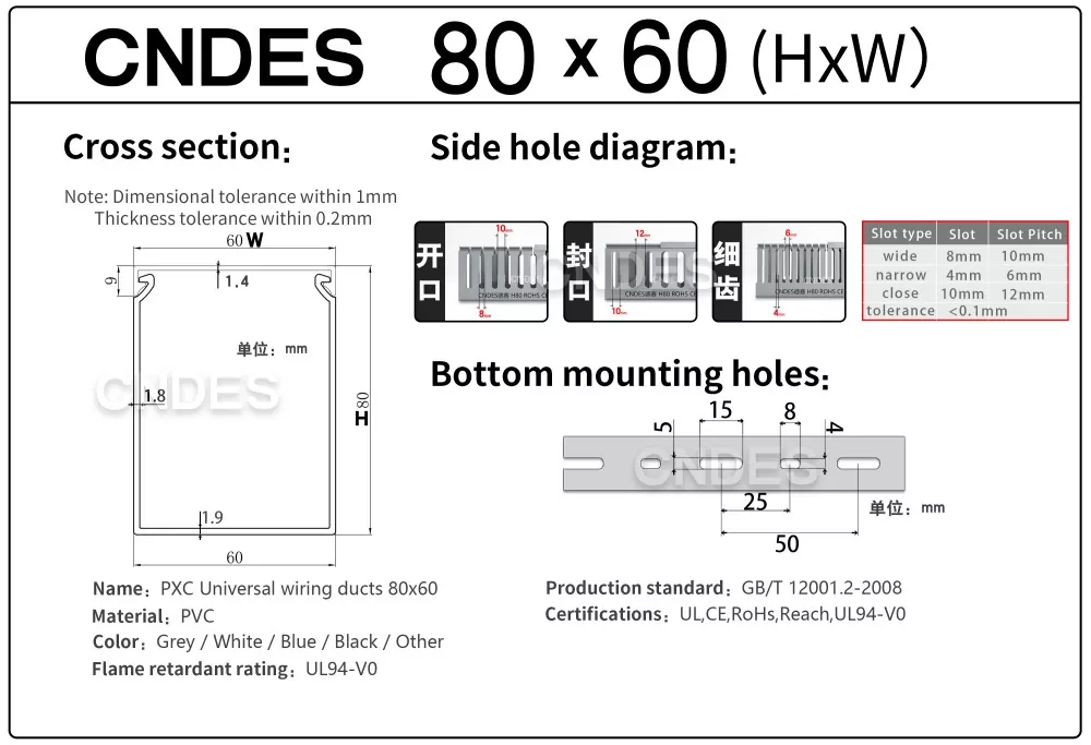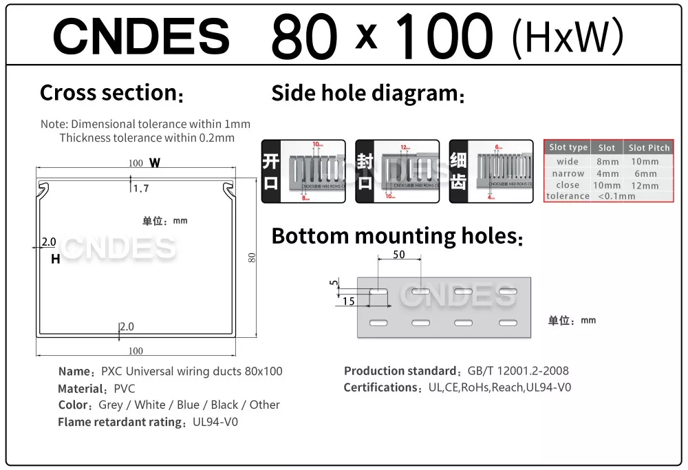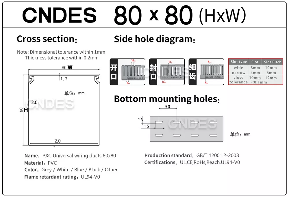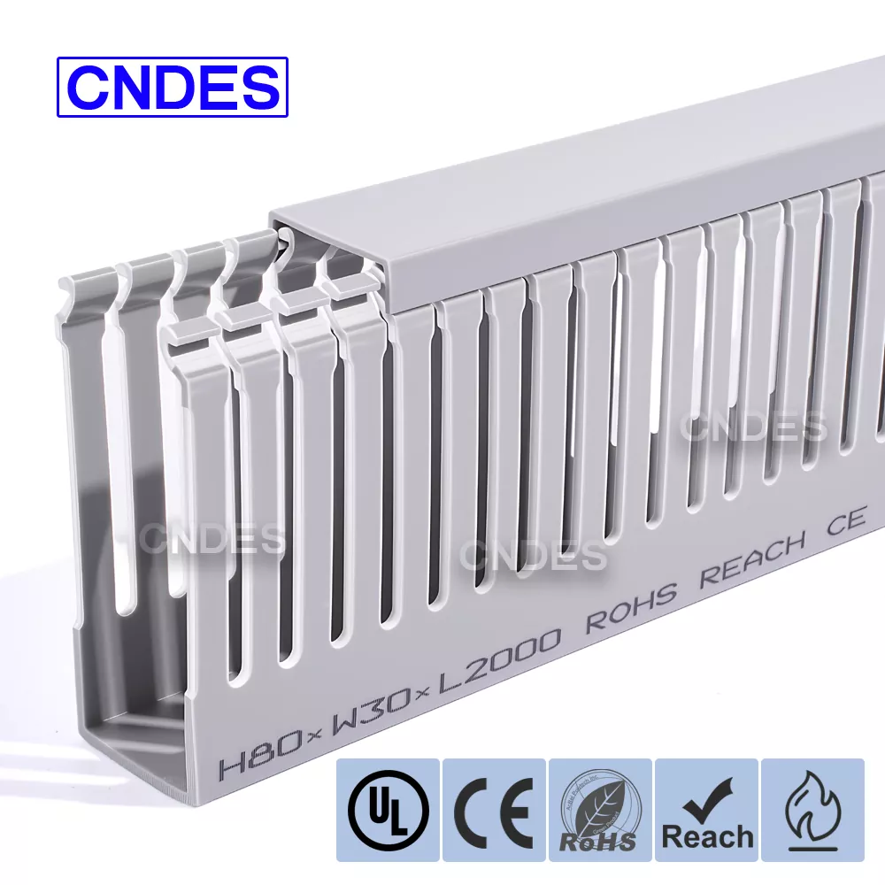 Conducta de cabluri de automatizare din PVC cu înălțime de 80 personalizată de la CNDES este proiectată pentru gestionarea eficientă a cablurilor în sistemele de automatizare industrială. Cu înălțimea sa de 80 mm și designul cu fante, această conductă oferă spațiu amplu pentru cablarea de înaltă densitate, menținând în același timp cablurile organizate și protejate în sisteme de control complexe, PLC-uri și aplicații de cablare a mașinii.