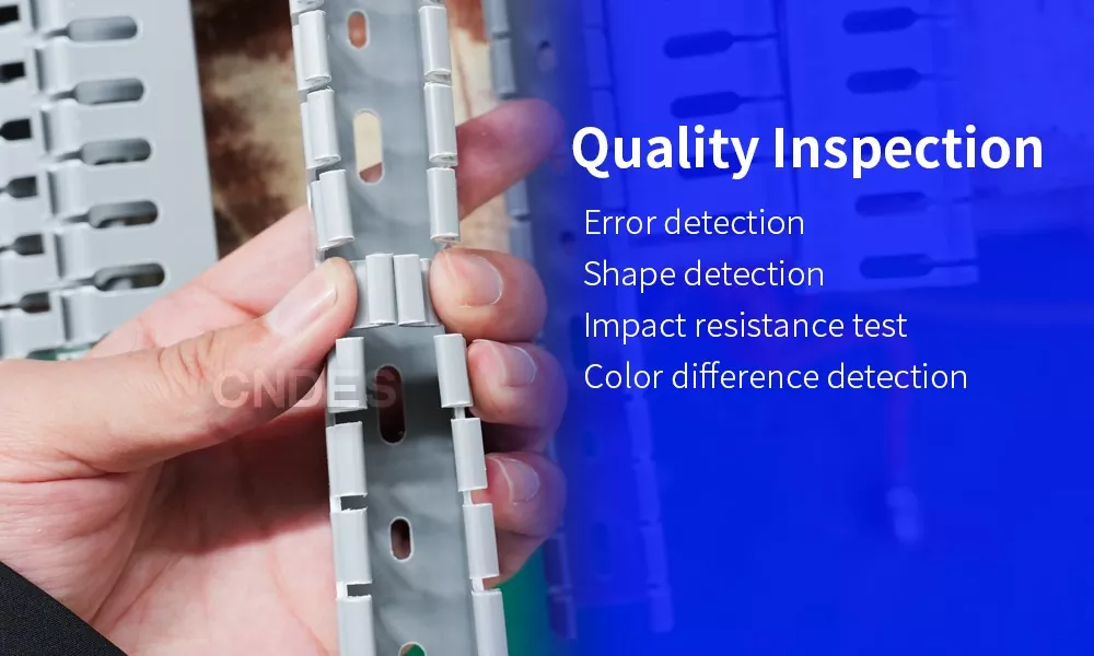 Inspecția de calitate la standarde înalte este esențială pentru a oferi produse bune. La CNDES, căutarea noastră pentru calitate este nesfârșită. Nu precupețim niciun efort pentru a oferi clienților noștri produse de încredere. Avem patru inspectori de calitate care lucrează în ture pentru a efectua inspecții online ale produselor noastre. Acest lucru asigură că conductele noastre pentru cabluri de automatizare din PVC cu înălțime 80 de calitate au formă pătrată, au suprafețe netede, îndeplinesc standardele acceptabile de duritate,
